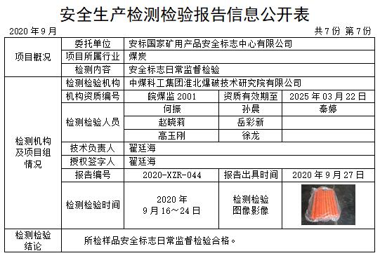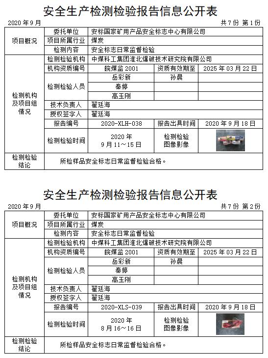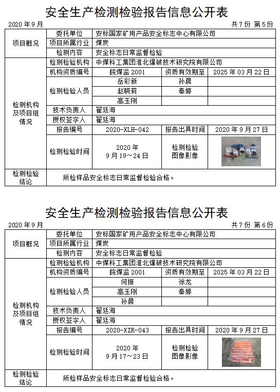 安全生產(chǎn)檢測檢驗(yàn)報告信息公開表(2020年9月)
