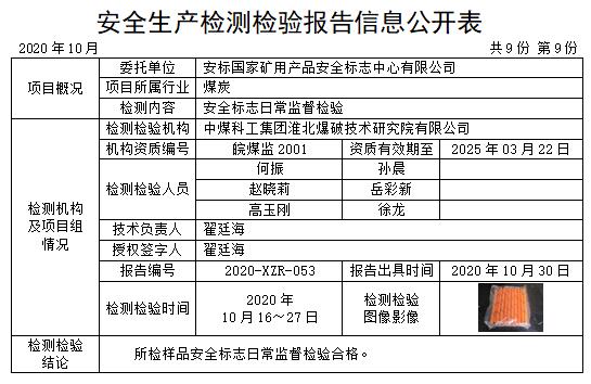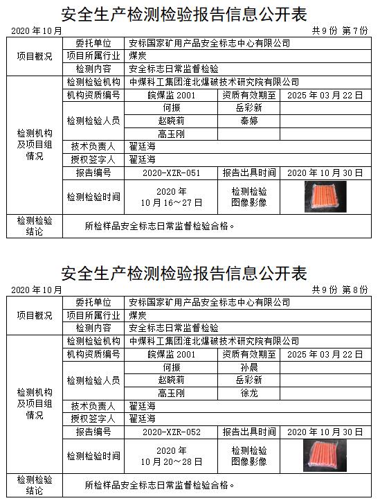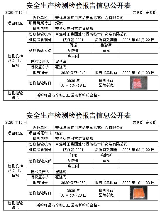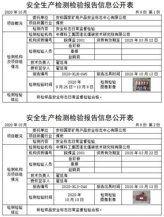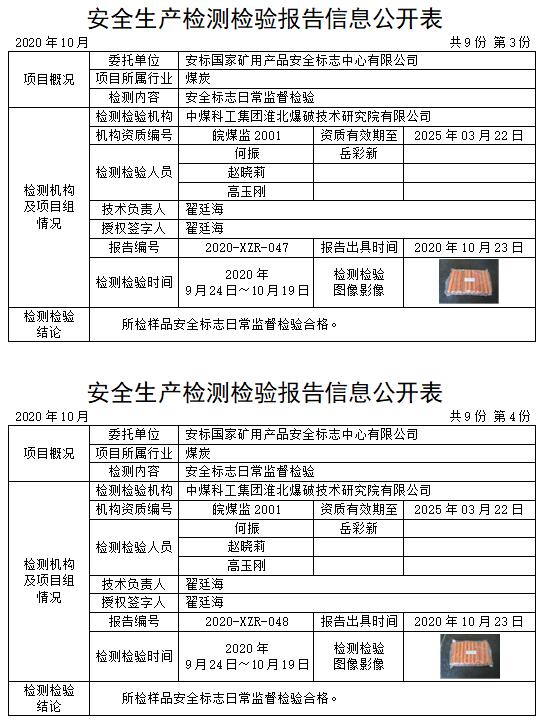 安全生產(chǎn)檢測檢驗報告信息公開表(2020年10月)