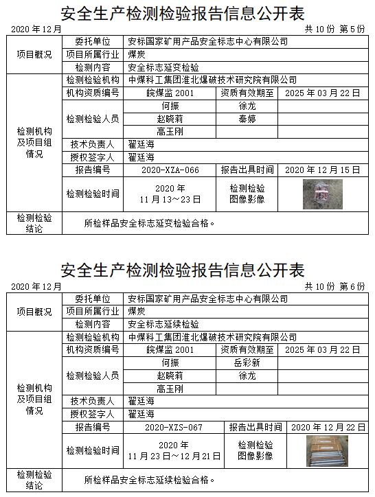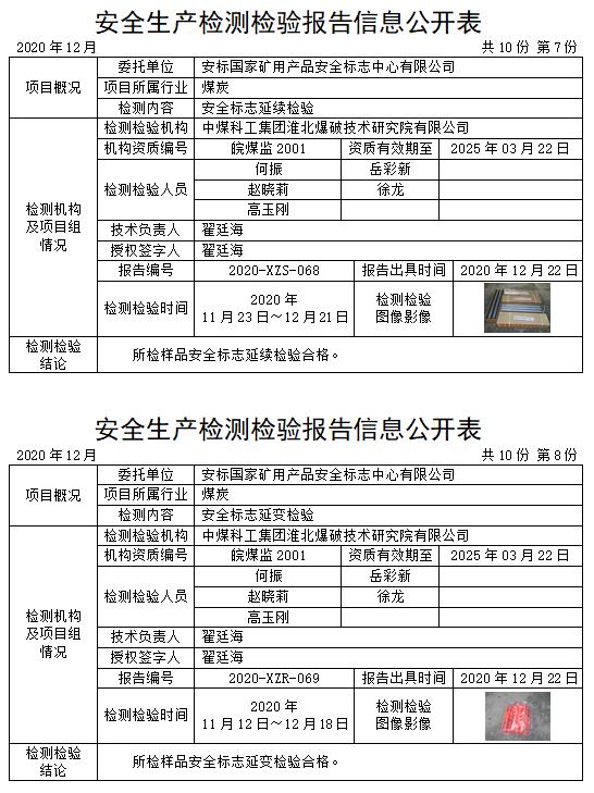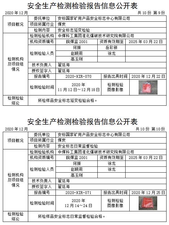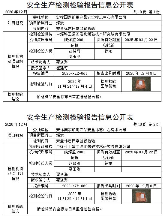 安全生產(chǎn)檢測(cè)檢驗(yàn)報(bào)告信息公開表(2020年12月)