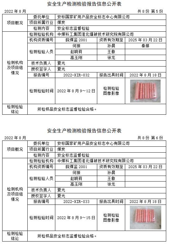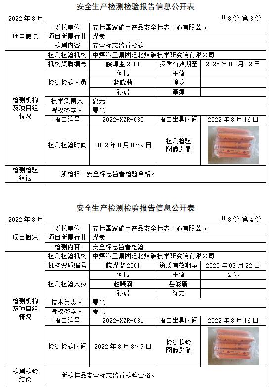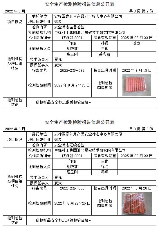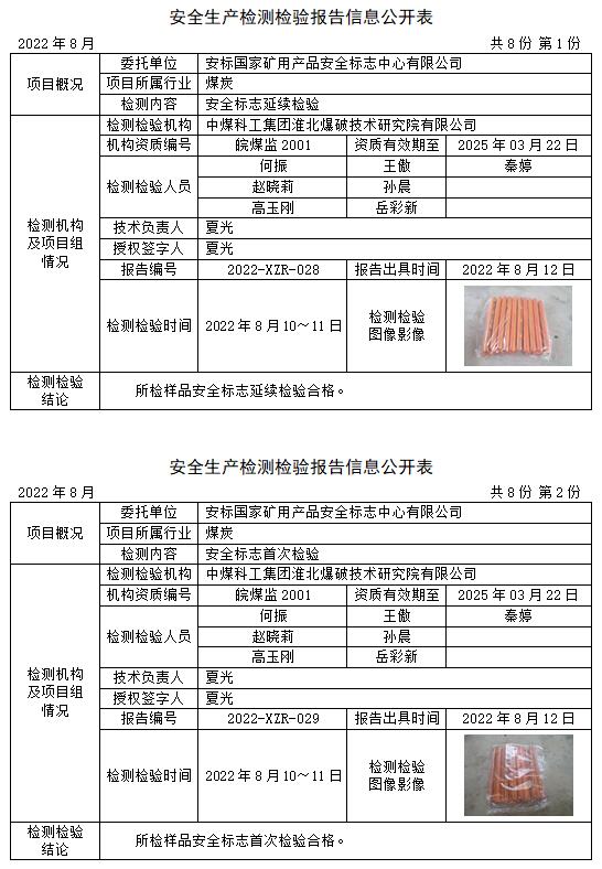 安全生產(chǎn)檢測檢驗報告信息公開表(2022年8月)