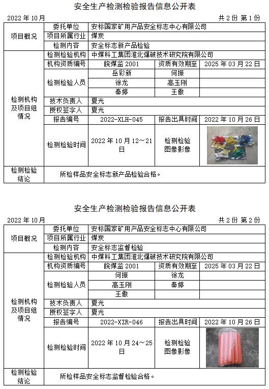 安全生產(chǎn)檢測(cè)檢驗(yàn)報(bào)告信息公開(kāi)表(2022年10月)