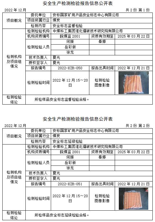 安全生產(chǎn)檢測(cè)檢驗(yàn)報(bào)告信息公開表(2022年12月)