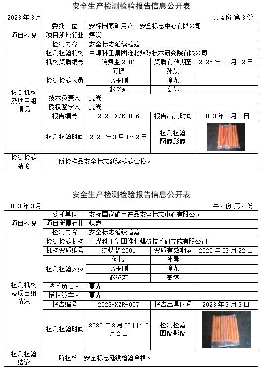 安全生產(chǎn)檢測(cè)檢驗(yàn)報(bào)告信息公開(kāi)表(2023年3月)