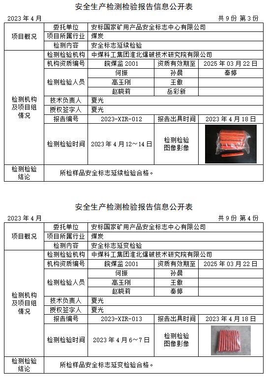 安全生產(chǎn)檢測(cè)檢驗(yàn)報(bào)告信息公開表(2023年4月)