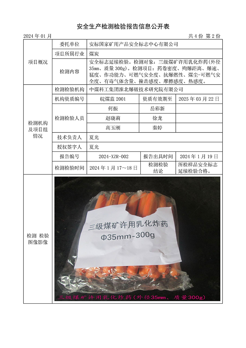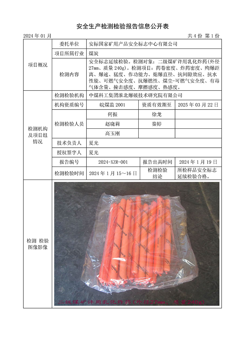 安全生產(chǎn)檢測檢驗(yàn)報告信息公開表(2024年1月份)
