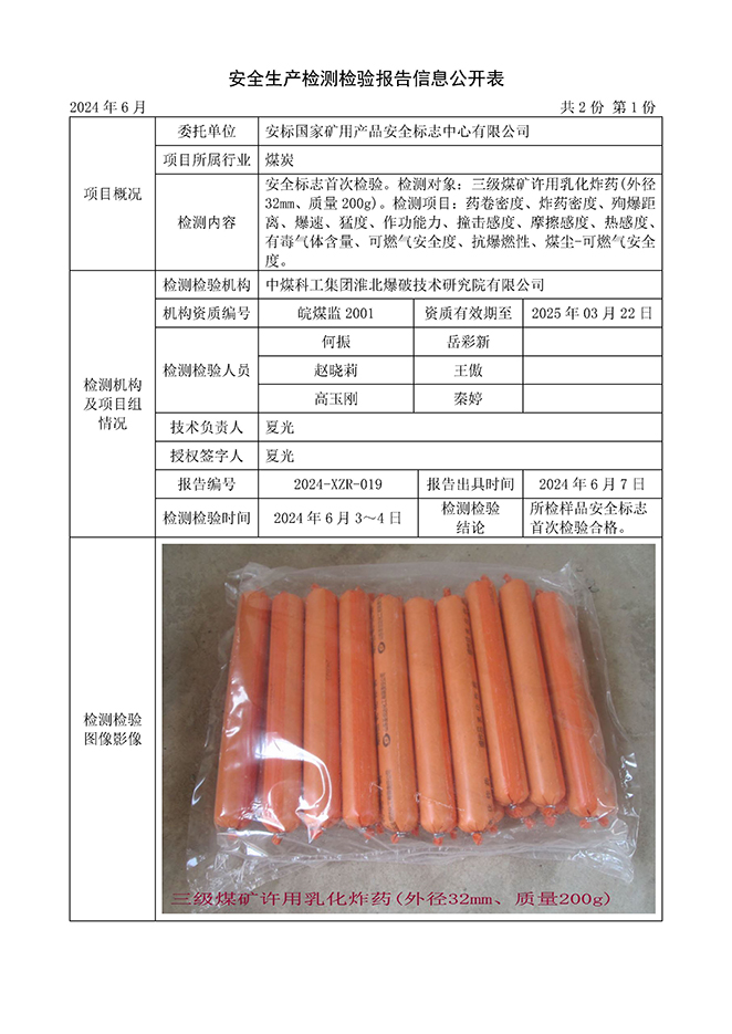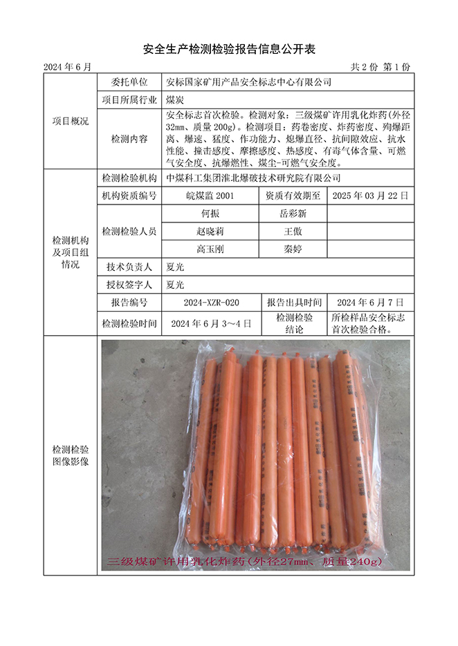 安全生產(chǎn)檢測檢驗(yàn)報(bào)告信息公開表(2024年6月份)
