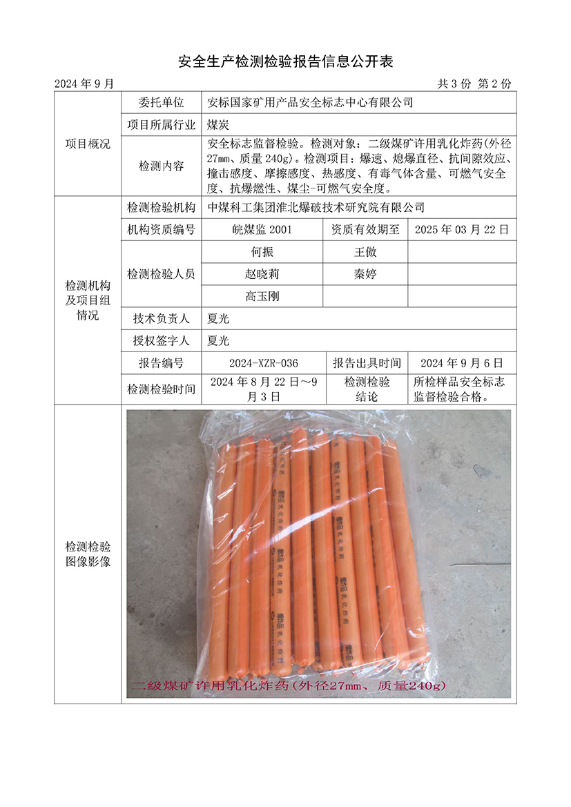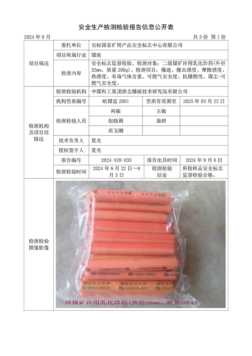 安全生產(chǎn)檢測檢驗報告信息公開表(2024年9月份)