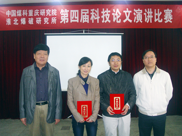 接下來,精神飽滿,儀表端莊的選手們一個個閃亮登場,整場比賽精彩紛呈,充分展現(xiàn)了各自的學(xué)術(shù)水平、演講水平和朝氣蓬勃的精神風(fēng)貌。評審委根據(jù)《關(guān)于舉辦第四屆科技論文演講比賽的通知》(煤科爆破所〔2012〕18號)規(guī)定的評分標(biāo)準,綜合考慮參賽選手的論文水平、演講水平、PPT制作水平以及現(xiàn)場表現(xiàn)等因素,進行了細致、慎重評審。最終,高同偉榮獲本次比賽一等獎;鄭思友、陸麗園榮獲二等獎;徐海峰、戴明虎、潘先鋒榮獲三等獎。所領(lǐng)導(dǎo)現(xiàn)場為獲獎選手頒發(fā)了榮譽證書,參會人員以熱烈的掌聲表示祝賀。