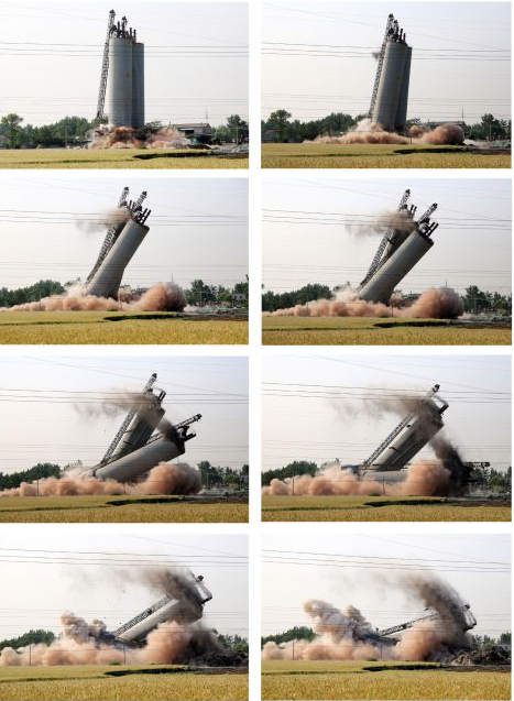 2017年5月21日下午4時,隨著我院爆破公司張計璨副經(jīng)理發(fā)出“起爆”口令,“轟”的一聲,兩座高達(dá)40余米的石灰窯體按設(shè)計方向倒塌。這標(biāo)志著由我院爆破公司承擔(dān)的石灰窯體爆破拆除工程成功完成。
