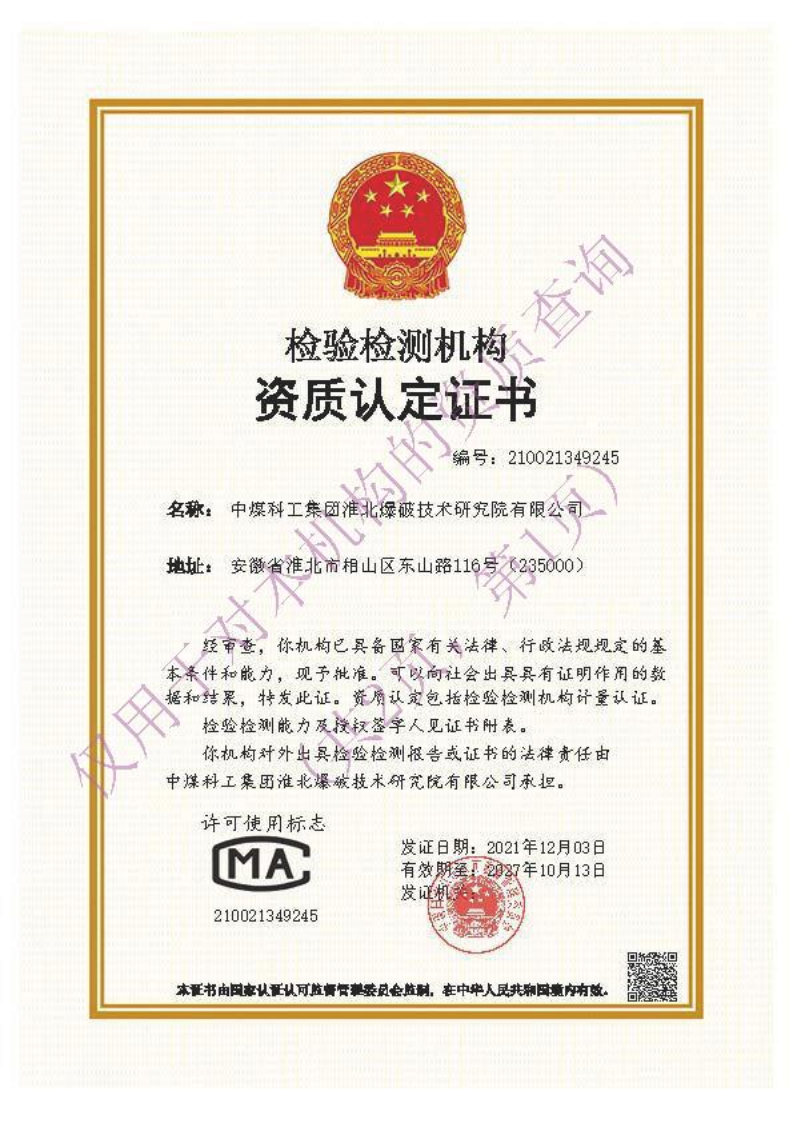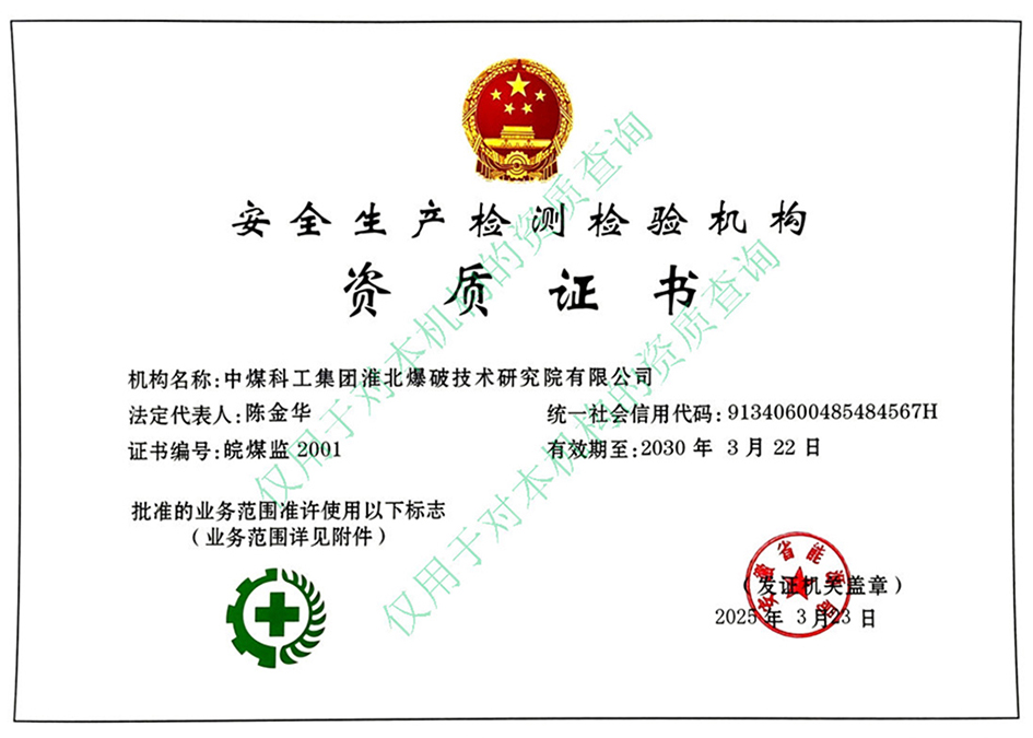 安全生產檢測檢驗機構資質證書,證書編號:皖煤監(jiān)2001